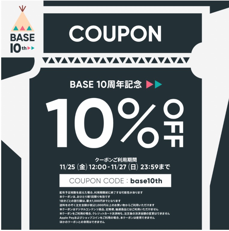 ベイス10周年記念クーポン